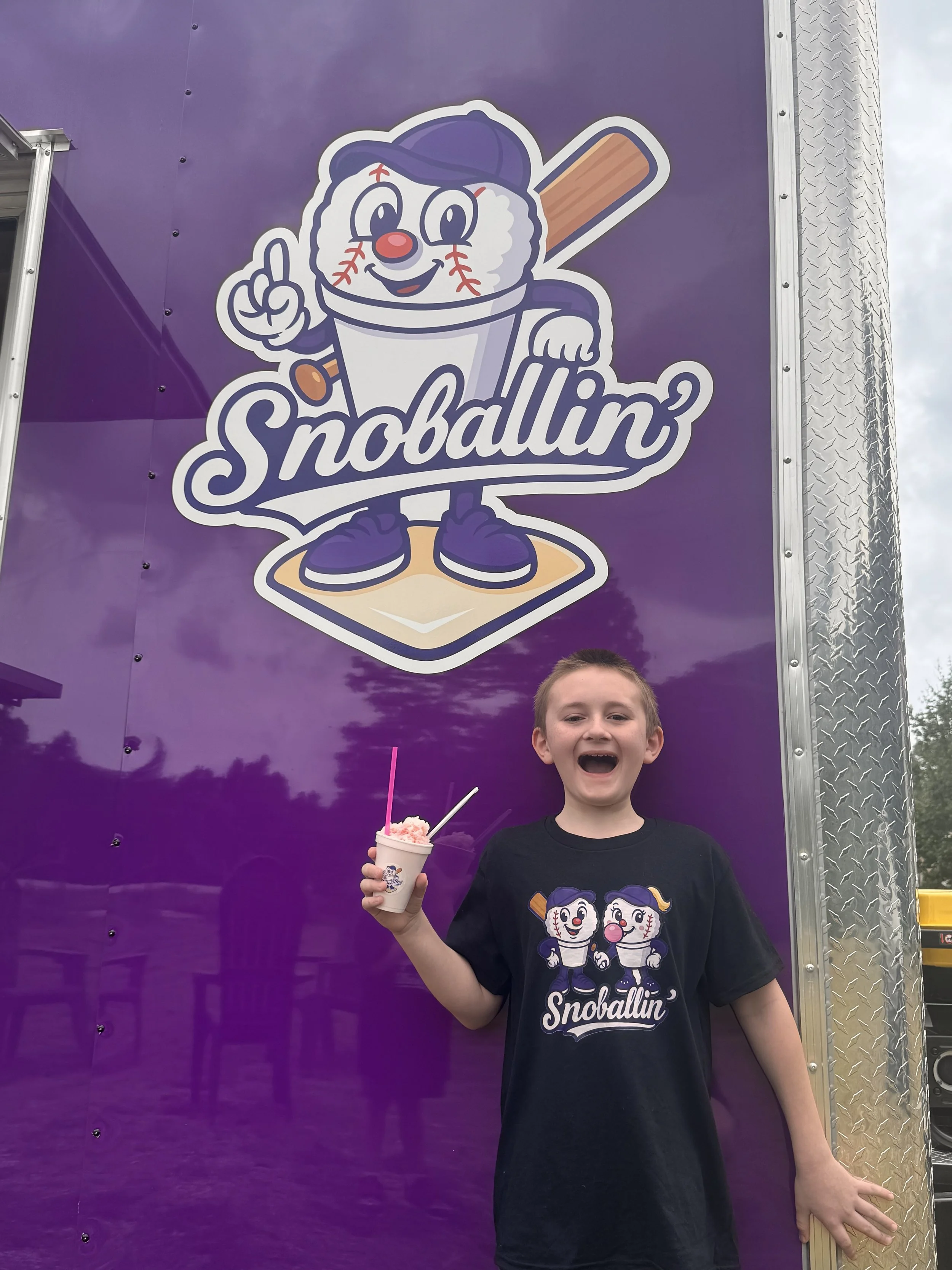 Snoballin’ is as simple as a family of 8 who love working together and making memories. And if you’ve ever stopped by, you might’ve noticed a fun little theme: all six kids have names that start with E. While the full starting lineup isn’t always at the stand, there’s usually an E or two stepping up to the plate.